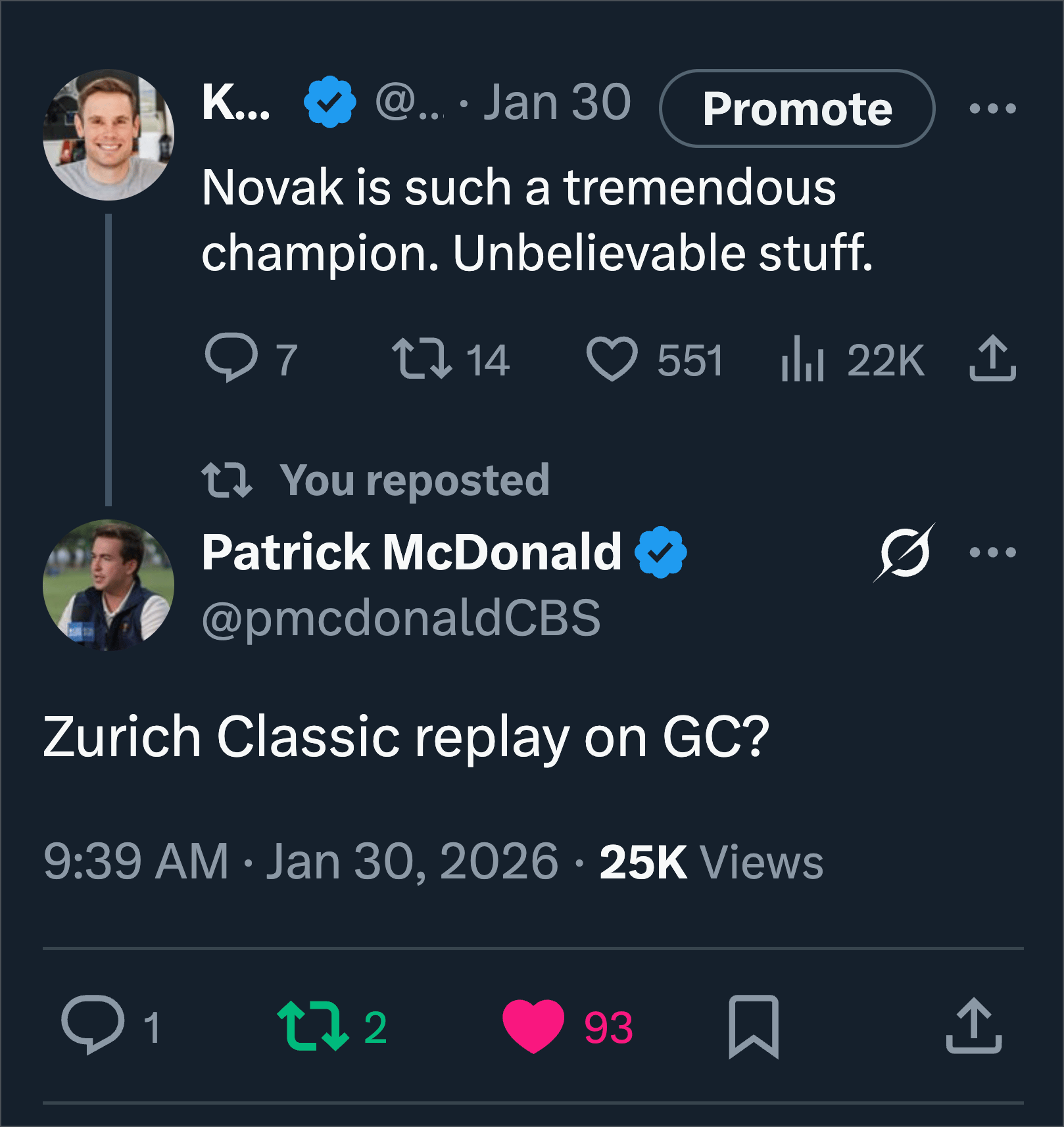 The way Kyle has been able to mold a silly Twitter joke (normal sport) into a must-read newsletter on the weekly happenings in our silly game gives a great look into why he's one of the smartest people in golf.