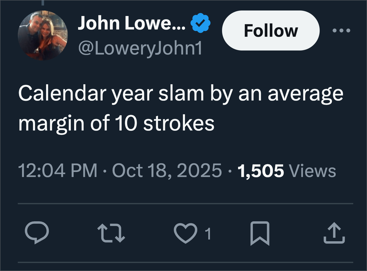 That would be like 18 shots better than field average at ANGC. The greatest rounds of all time are in the ~12 shots better than field average range. Eighteen feels impossible, which is exactly how Ohtani’s game felt.
