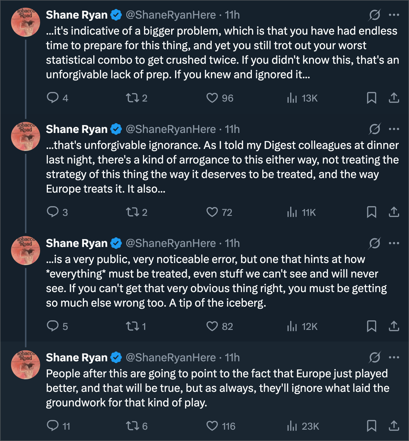 Shane Ryan had a great thread about how rolling Morikawa-English out again on Saturday was emblematic of American incompetence. His thread ended with this.